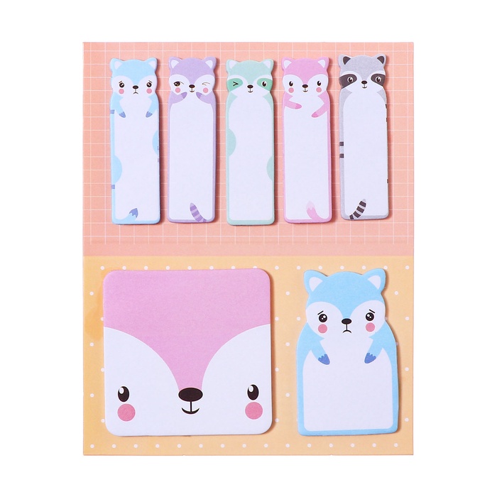 Блок-закладки с липким краем из бумаги, 20л*7 цветов, 57*17мм, 60*60 мм, 57*36мм, Мишки