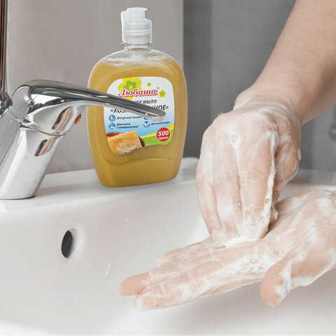 Жидкое хозяйственное мыло ЛЮБАША идеально подходит для использования как в офисе, так и дома, а также в отелях, ресторанах и других общественных местах.