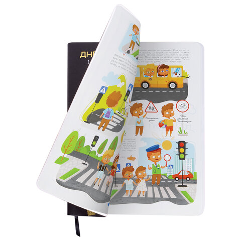 Предназначен для учащихся начальных классов. Интегральная обложка из экокожи надежно защищает бумагу и долго сохраняет привлекательный внешний вид, а тиснение фольгой придает изделию оригинальность. Внутренний блок содержит 48 листов и состоит из офсетной белой бумаги плотностью 70 г/м2. В справочном материале собраны основные подсказки для учащихся. Для удобства пользования дневник снабжен закладкой-ляссе.
