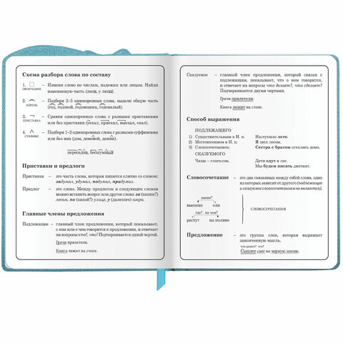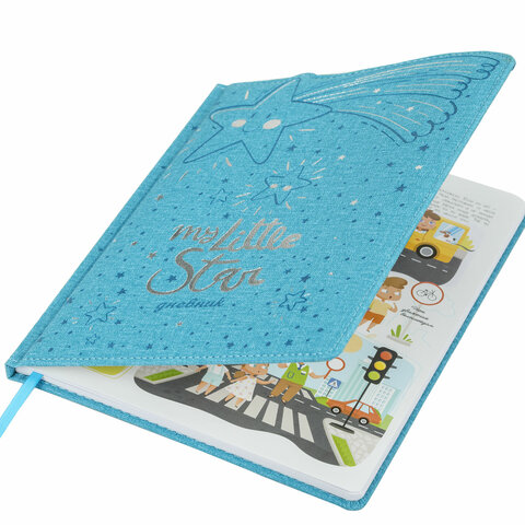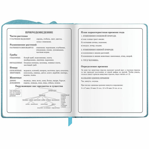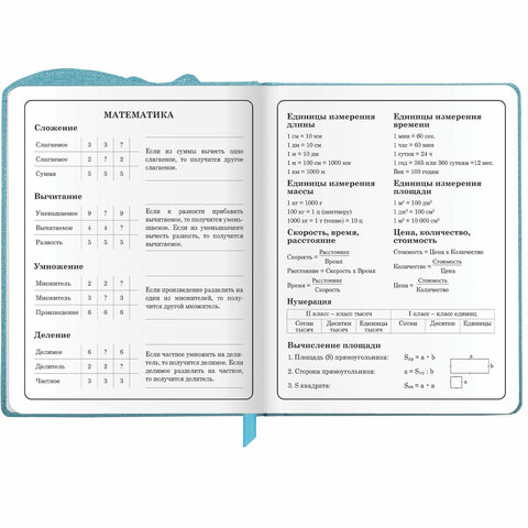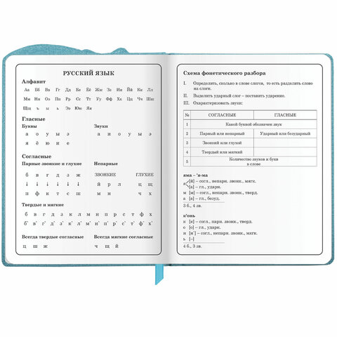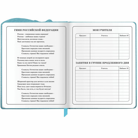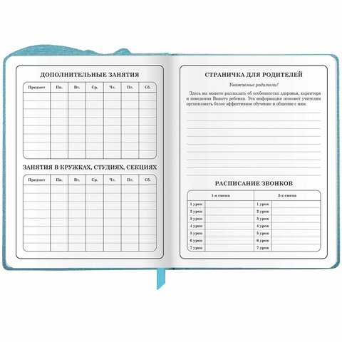 Предназначен для учащихся начальных классов. Твердая обложка из экокожи надежно защищает бумагу и долго сохраняет привлекательный внешний вид, а тиснение фольгой придает изделию оригинальность. Внутренний блок содержит 48 листов и состоит из офсетной белой бумаги плотностью 70 г/м2. В справочном материале собраны основные подсказки для учащихся. Для удобства пользования дневник снабжен закладкой-ляссе.