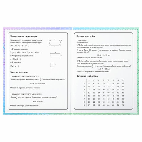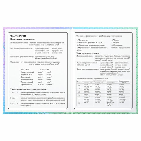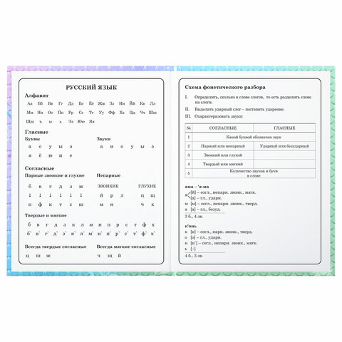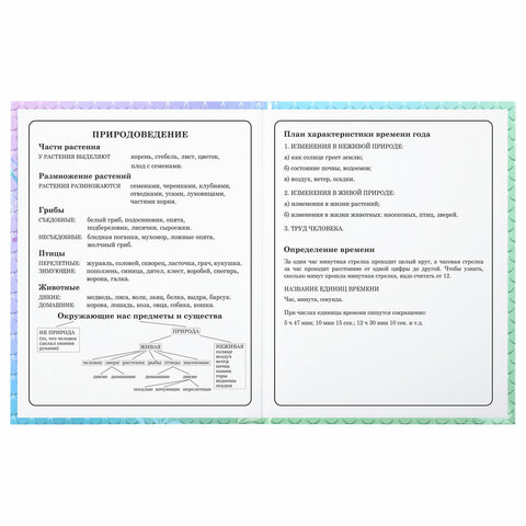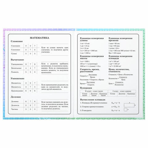 Предназначен для учащихся начальных классов. Твердая обложка надежно защищает бумагу и долго сохраняет привлекательный внешний вид. Изображения с помощью спецэффекта "глянцевая ламинация" становятся более яркими и насыщенными, исключается возможное истирание рисунка. Внутренний блок содержит 48 листов и состоит из офсетной белой бумаги плотностью 60 г/м2. В справочном материале собраны основные подсказки для учащихся.