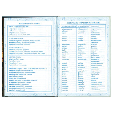 Дневник для музыкальной школы 140х210 мм, 48 л., обложка кожзам твердая, фольга, BRAUBERG, справочный материал, темно-синий, 105500