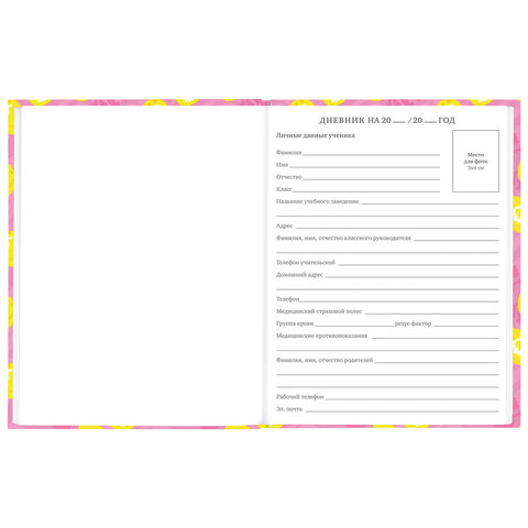 Предназначен для учащихся 5-11 классов. Твердая обложка надежно защищает бумагу и долго сохраняет привлекательный внешний вид, а выборочный лак придает ей оригинальность и выразительность. Внутренний блок содержит 48 листов офсетной белой бумаги плотностью 60 г/м2. Дневник снабжен полезным справочным материалом для учащихся.