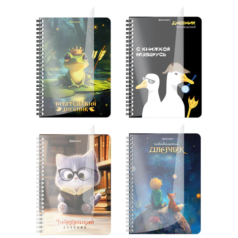 Дневник читательский А5 58 листов, гребень, пластиковая обложка, картон, BRAUBERG, "МИКС", 118528