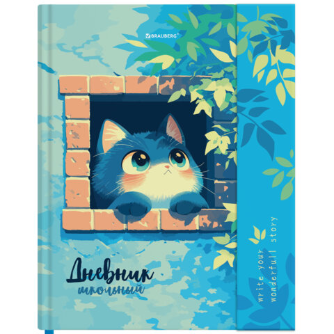 Дневник 1-11 класс 48л, твердый, BRAUBERG, матовая ламинация, магнитный клапан, закладка-ляссе, с подсказом, Котик, 107244