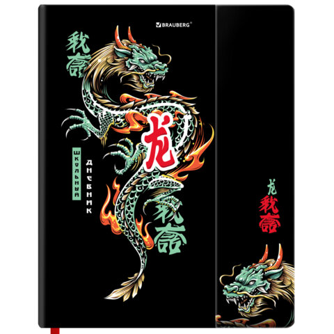 Дневник 1-11 класс 48л, твердый, BRAUBERG, матовая ламинация, магнитный клапан, закладка-ляссе, с подсказом, Дракон, 107245