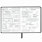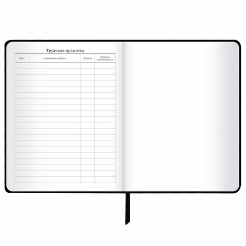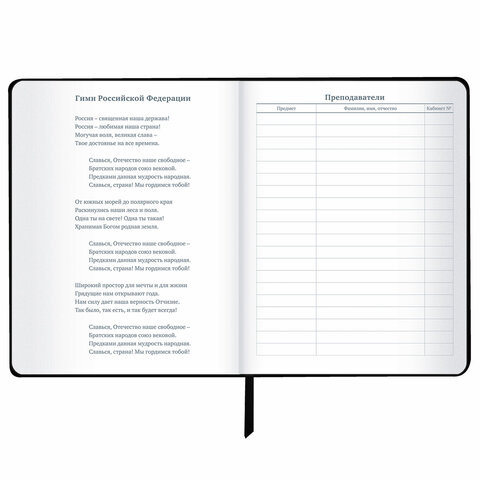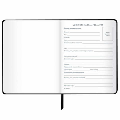 Внутренний блок содержит 48 листов и состоит из офсетной белой бумаги повышенной плотности 70 г/м2. Для удобства использования дневник снабжен закладкой-ляссе.