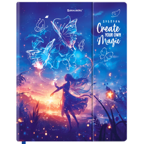 Дневник 1-11 класс 48л, твердый, BRAUBERG, матовая ламинация, магнитный клапан, закладка-ляссе, с подсказом, Magic, 107243