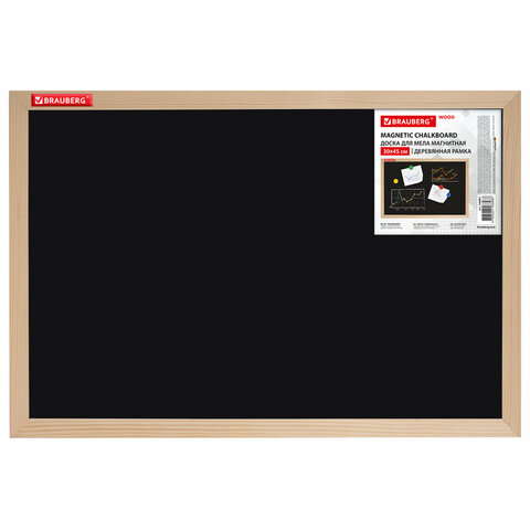 Доска для мела магнитная 60х90 см, черная, деревянная рамка, BRAUBERG Standard, 238804