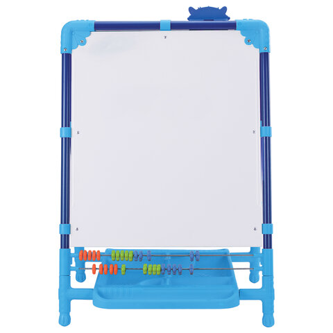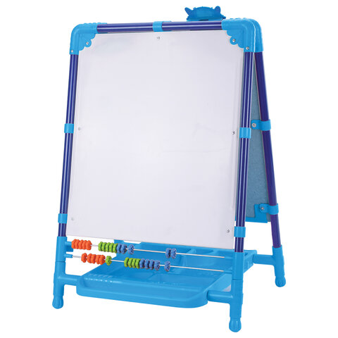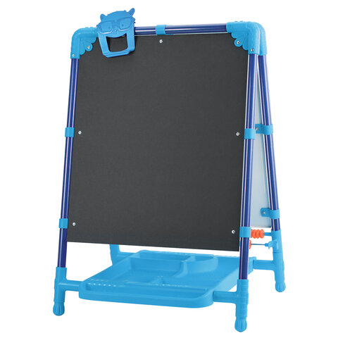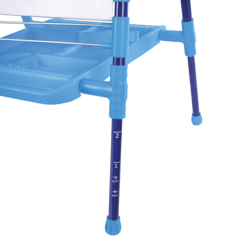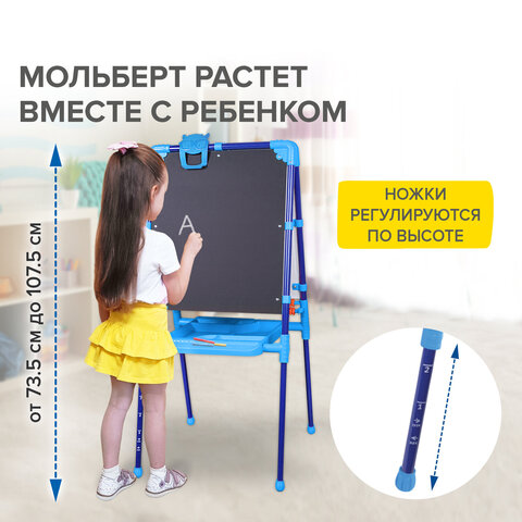 Поверхность мольберта белого цвета предназначена для рисования специальным маркером для белой доски, а также для размещения магнитов; черная поверхность - для рисования мелками. Для детей старше 3-х лет. Регулируется по высоте от 73,5 до 107,5 см для удобства использования детьми разного возраста и роста. Размер рабочей поверхности: 53х46 см. Цвет: синий.
