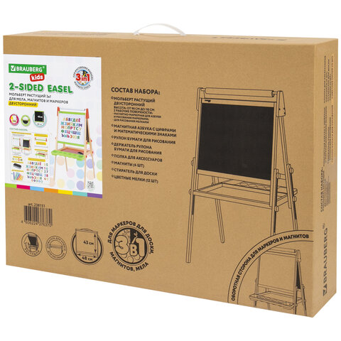 Мольберт растущий двусторонний BRAUBERG KIDS предназначен для развития творческих способностей ребенка и обустройства игрового пространства в детских учреждениях и дома.