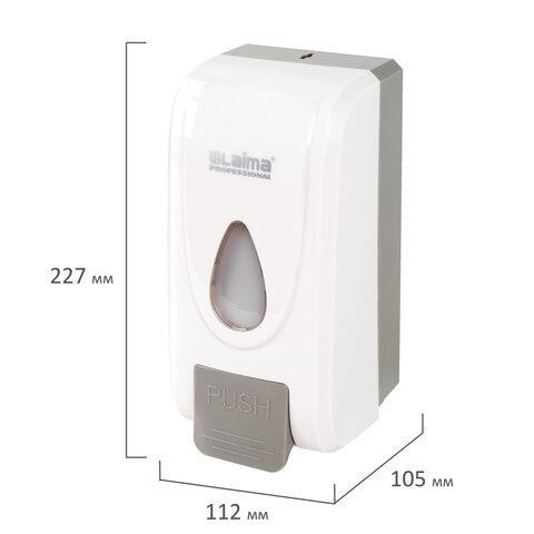 Дозатор для жидкого мыла-пены LAIMA PROFESSIONAL PREMIUM, НАЛИВНОЙ, 1 л, белый, ABS-пластик, 609510