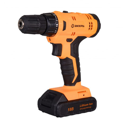 Дрель-шуруповерт безударная АККУМУЛЯТОРНАЯ, с двумя аккумуляторами 2 Ач, 18 В, ВИХРЬ ДА-18Л-2К, 72/14/9