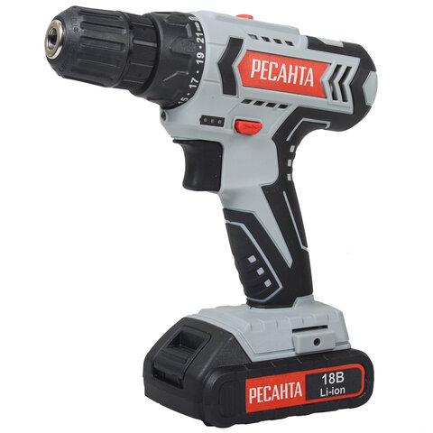 Дрель-шуруповерт аккумуляторная, 18 В, 1400 об/мин, 2 аккуммулятора, 2 Ач, РЕСАНТА ДА-18-2ЛК 75/14/5