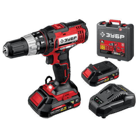 Дрель-шуруповерт безударная АККУМУЛЯТОРНАЯ, с двумя аккумуляторами 2 Ач, 18 В, ЗУБР ДШЛ-185-22