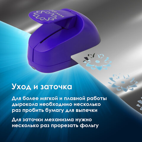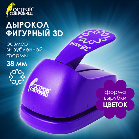 3D дырокол позволяет сделать объемную вырубку, что придаст поделке уникальный вид! Инструмент компактный и удобный в применении, размер - 7,5х10,4х17,5 см. Диаметр пробиваемого отверстия - 38 мм, форма вырубки - цветок.