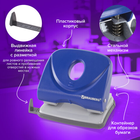 Дырокол BRAUBERG "Original" – это необходимый офисный предмет, с помощью которого можно аккуратно пробивать отверстия в бумаге и затем подшивать документы в папку.