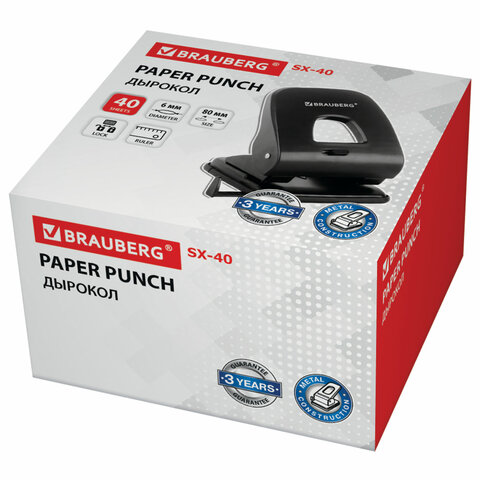 Дырокол BRAUBERG "SX-40" – предмет, который необходим в каждом офисе. С его помощью можно аккуратно пробивать отверстия в документах и подшивать их в папку.