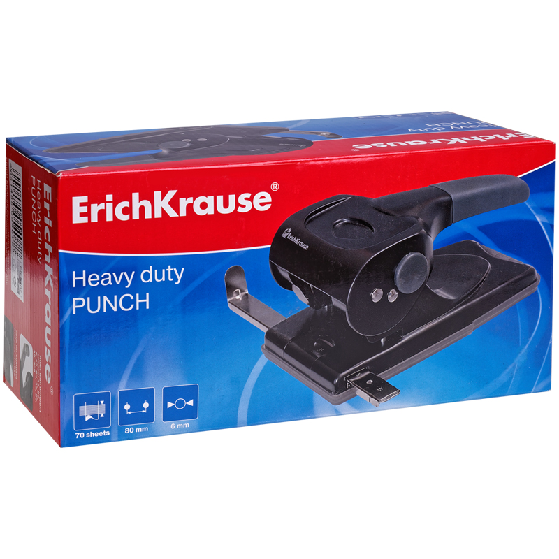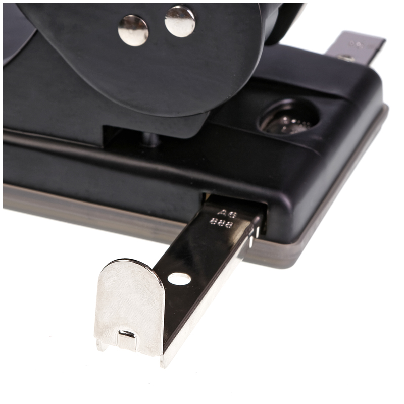 Предназначен для пробивания большого объема документов. Противоскользящая прорезиненная ручка. Наличие встроенной линейки для отметки форматов обеспечивает аккуратное и точное пробивание бумаги. Диаметр прокола 5.5 мм. Расстояние между проколами 80 мм. Имеет встроенный фиксатор для хранения дырокола в сложенном положении. Гарантия на механизм 2 года.