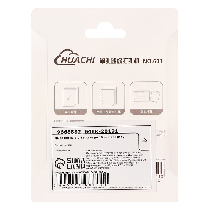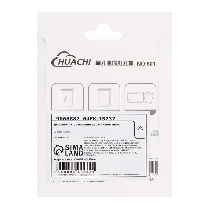 Дырокол малый, на одно отверстие 6 мм
