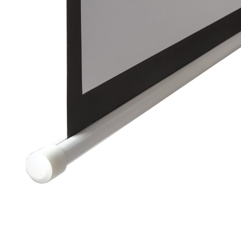 Экран с диагональю 99" и размером 180х180 см имеет черную кайму для улучшения восприятия яркости изображения. Коэффициент отражения составляет 1.0, угол обзора - 160°. Оснащен пружинным механизмом, благодаря которому полотно легко разворачивается и фиксируется на любой высоте. В комплекте инструкция и компактный многоразовый пузырьковый уровень для удобного монтирования на стену или потолок.