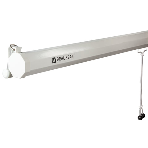 Удобный настенный экран BRAUBERG "WALL" с ручным приводом и широкими возможностями крепления предназначен для использования в качестве демонстрационного инвентаря при проведении уроков, тренингов, занятий, презентаций.