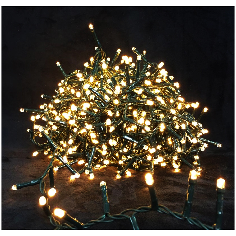 Электрогирлянда для улицы и дома светодиод. "String ligh" 368 ламп, тепл., на батарейках, 27,6м, цвет провода зеленый.