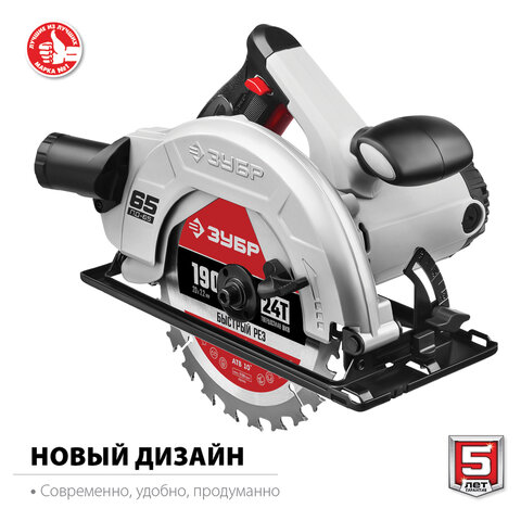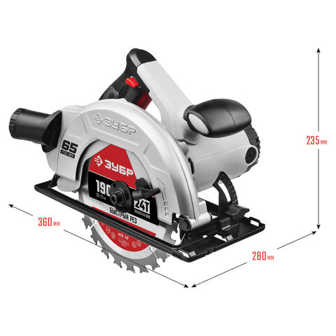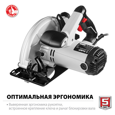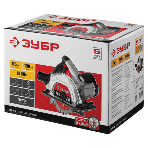 Пила циркулярная, 1600 Вт, 5000 оборотов/мин, диск 190 мм х 20 мм, ЗУБР ПДП-65