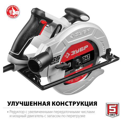 Пила циркулярная, 1300 Вт, 4700 оборотов/мин, диск 190 мм х 20 мм, ЗУБР ПД-55
