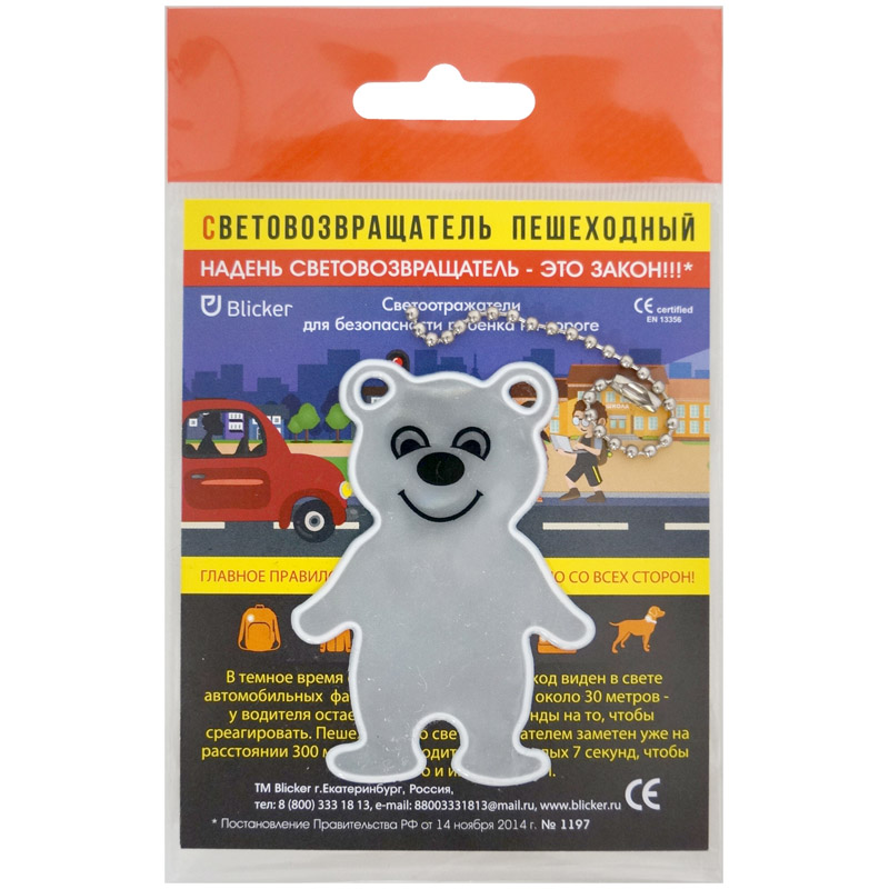 Световозвращающая подвеска Blicker "Мишка", белый