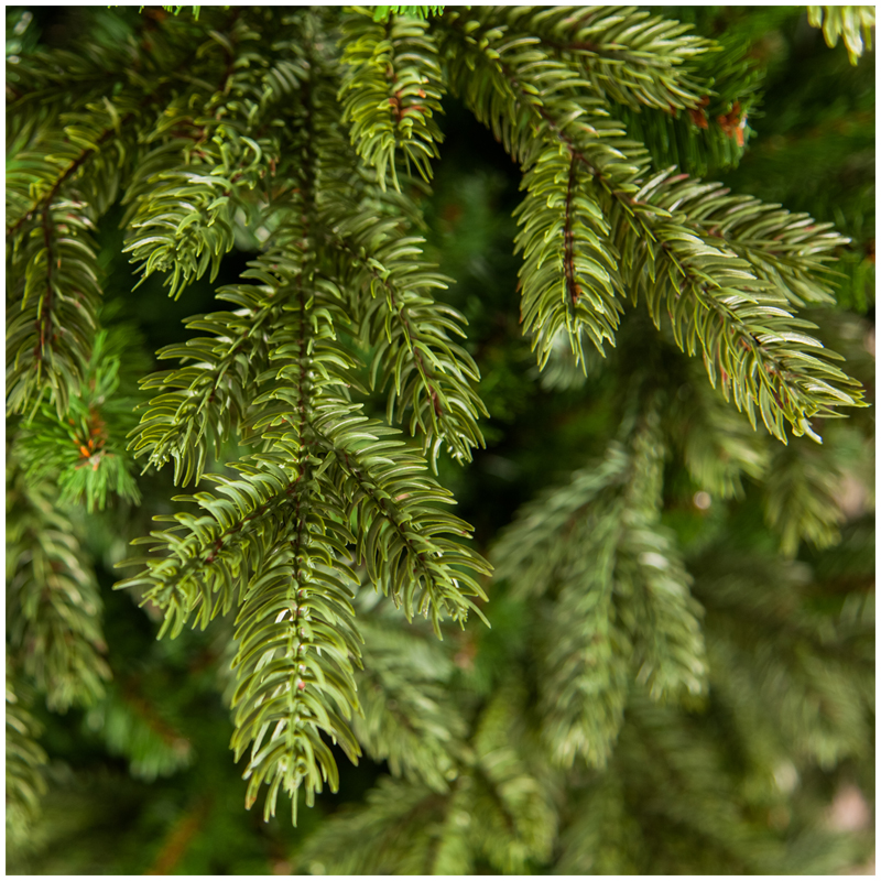 Ель треугольной формы. Диаметр нижнего яруса 142 см. Темно-зеленый цвет. Хвоя микс пленка ПВХ и резина (ре), длина хвоинки 1,8 мм, ветви вставляются в ствол, количество веток 2406.