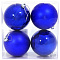 Набор из 4-х новогодних шаров размером 8 см. В наборе матовые и глянцевые шары. Цвет - синий. Упаковка - прозрачная ПВХ коробка. Материал шаров - пластик. Размер упаковки 16x16x8 см.