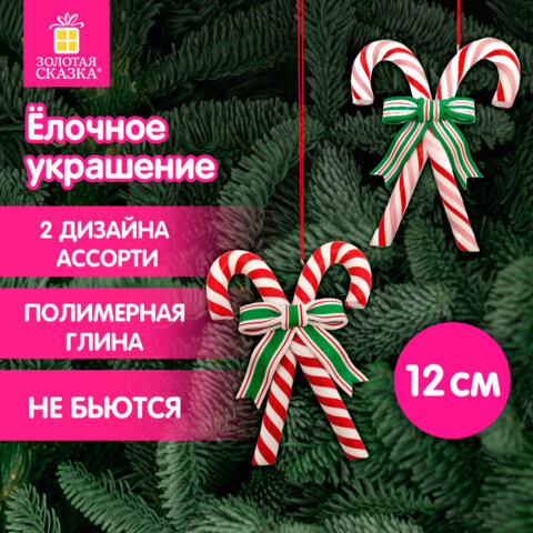 Елочное украшение представляет собой карамельную трость, которая придаст вашей ёлке неповторимость и добавит волшебства в праздник. Игрушка выполнена из полимерной глины, а значит, при падении останется целой, что особенно актуально в домах с детьми!
