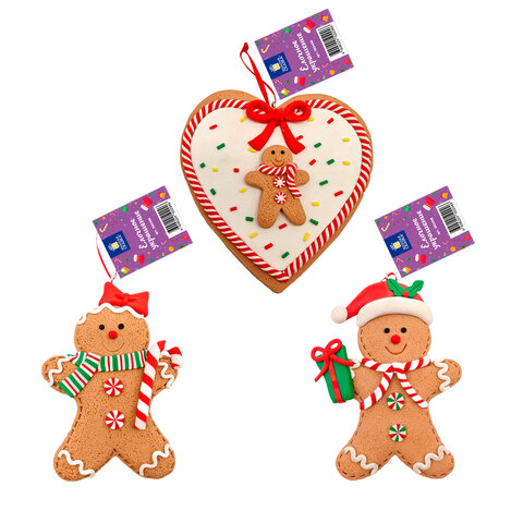 Украшение елочное (1шт) "Пряник", 12х9 см, полимерная глина, ассорти 3 дизайна, ЗОЛОТАЯ СКАЗКА, 592408
