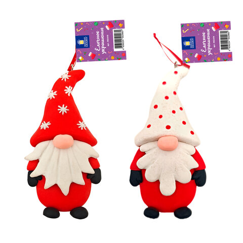 Украшение елочное (1шт) "Гномик" 12х6 см, полимерная глина, ассорти 2 дизайна, ЗОЛОТАЯ СКАЗКА, 592410
