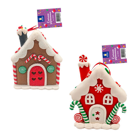 Украшение елочное (1шт) "Пряничный домик", 9х10см, полимерная глина, ассорти, ЗОЛОТАЯ СКАЗКА, 592409