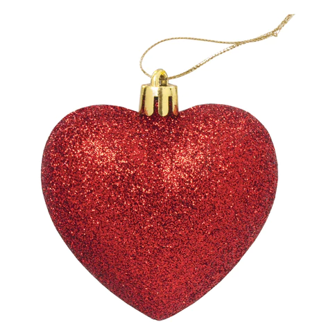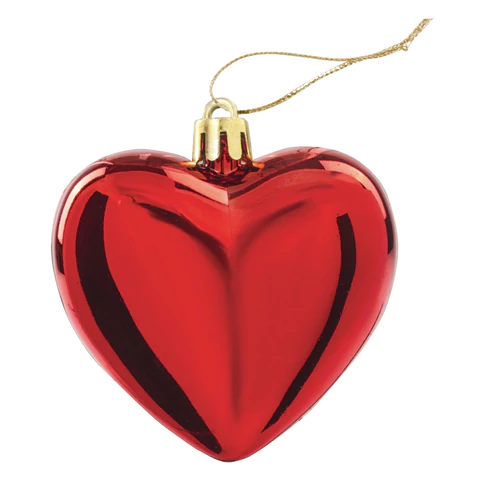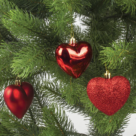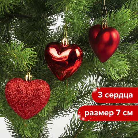 Елочные украшения выполнены в форме сердечек.