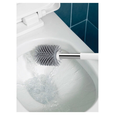 Силиконовый ершик легко справляется с труднодоступными местами. Ерш для унитаза оснащен специальной конструкцией для стекания жидкости, что не позволяет воде и запахам застаиваться в туалете и ванной. Для удобства уборки волос и прочих предметов, ёрш имеет специальные щипцы, которые спрятаны в ручке.