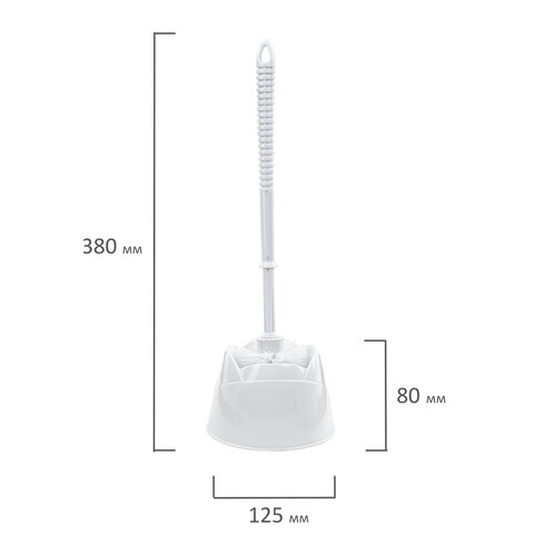 Изготовлен из высококачественного пластика белого цвета. Диаметр конусообразной подставки - 12,5 см. Ершик оснащен петлей для подвешивания. Диаметр щетки - 7,5 см. Высота - 36 см.