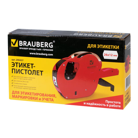 Однострочный этикет-пистолет BRAUBERG предназначен для нанесения на этикетки цифр и символов (руб, $, Евро, kg).
