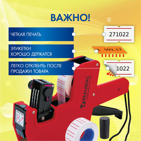 Однострочный этикет-пистолет BRAUBERG предназначен для нанесения на этикетки цифр и символов (руб., $, Евро, kg).