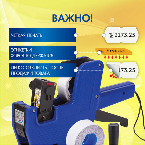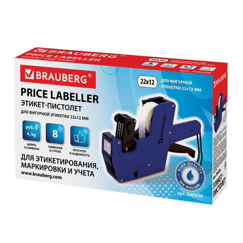 Однострочный этикет-пистолет BRAUBERG предназначен для нанесения на этикетки цифр и символов (руб, $, Евро, kg).