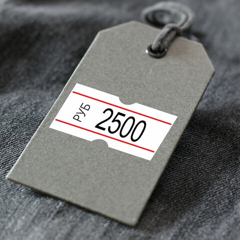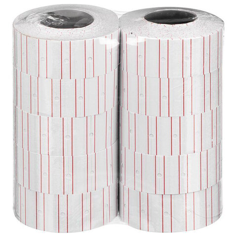 Цвет белый с красной полосой, форма — прямоугольная. Один рулон содержит 1000 этикеток размером 21x12 мм. 10рулонов в комплекте. Поставляются в термоусадочной пленке.