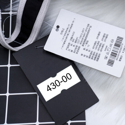 Цвет белый, форма — прямоугольная. Один рулон содержит 600 этикеток размером 21x12 мм. 5 рулонов в комплекте. Поставляются в термоусадочной пленке.