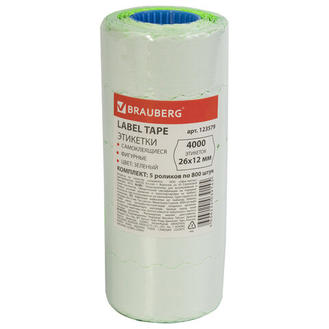Цвет - зеленый, форма - "волна". Один рулон содержит 800 этикеток размером 26x12 мм. 5 рулонов в комплекте. Поставляются в термоусадочной пленке.