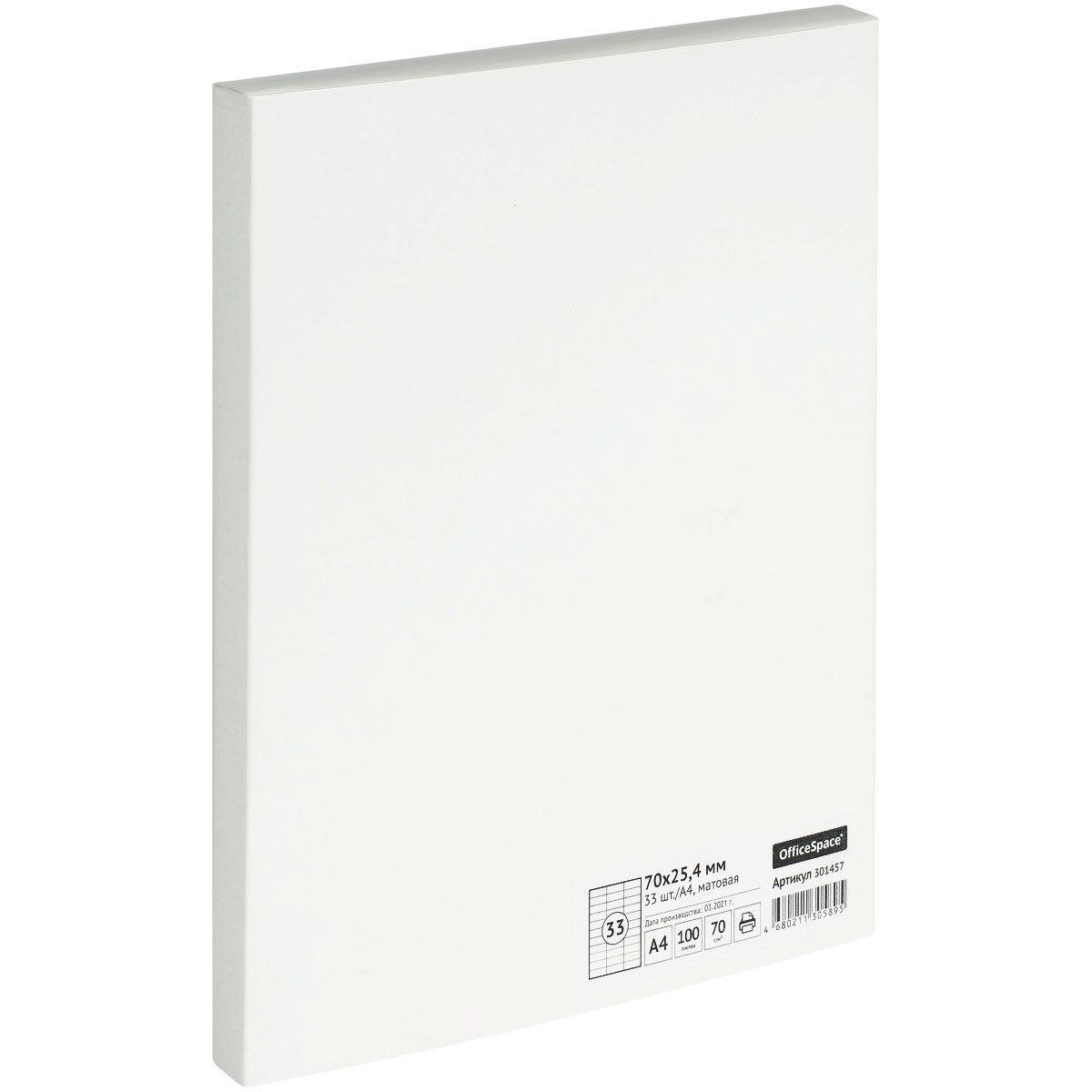 Этикетки самоклеящиеся А4 100л. OfficeSpace, белые, 33 фр. (70х25.4), 70г/м2