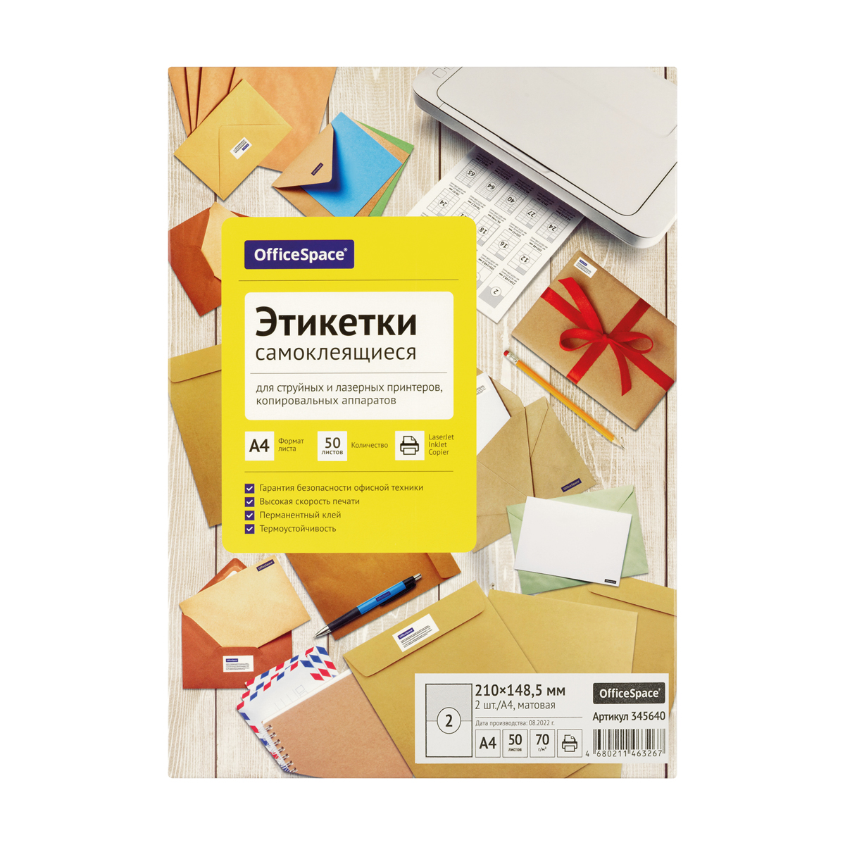 Этикетки самоклеящиеся А4 50л. OfficeSpace, белые, 02 фр. (210*148,5), 70г/м2