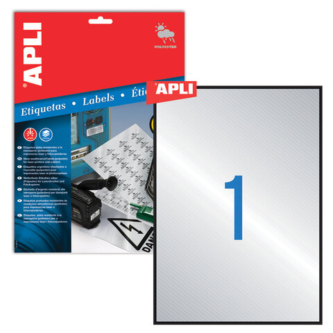 Этикетка самоклеящаяся 210х297 мм, 1 этикетка, серебристая, 20 листов, APLI, 10071