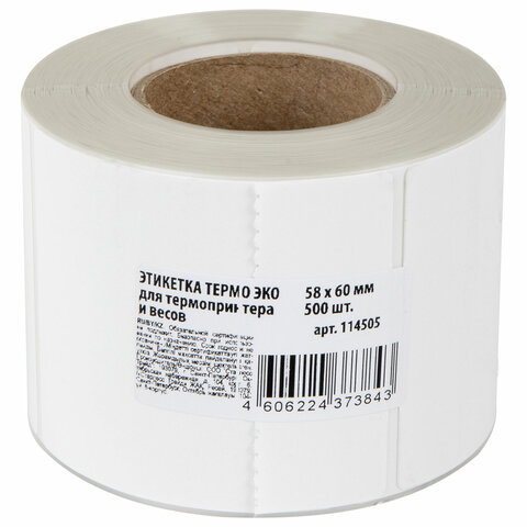 Термоэтикетки ЭКО, 58х80мм, 350 этикеток в ролике, 118586