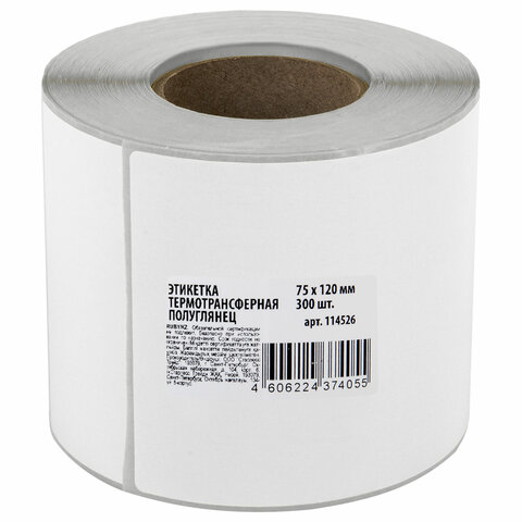 Этикетка термотрансферная ПОЛУГЛЯНЕЦ (75х120 мм), 300 этикеток в ролике, 115609